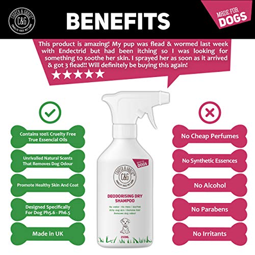Dry Dog Shampoo Spray For Smelly Dogs – Wipe Clean Stain Remover – Cruelty Free Waterless Grooming Products Organic…