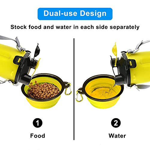 MATT SAGA Portable Pet Water Bottle and Food Container for Travel 2-in-1 Dual Chamber Bottle with 2 Collapsible Bowls…