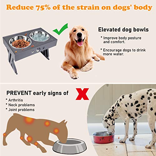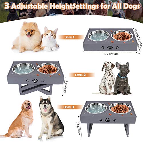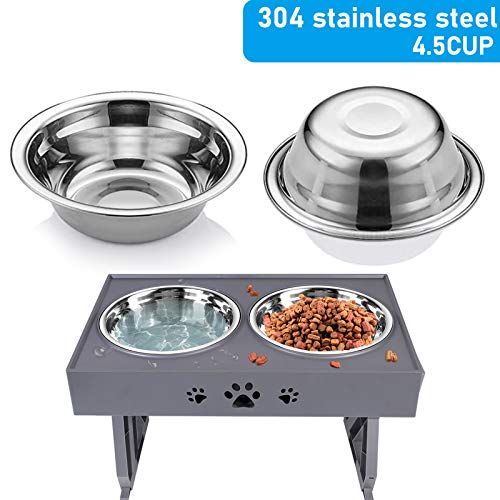 Raised Dog Bowl Adjustable 3 Heights Stands with 2 x 1140ml Stainless Steel Dishes Bowls On Stands for Large Dogs…