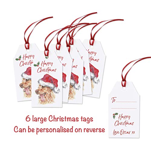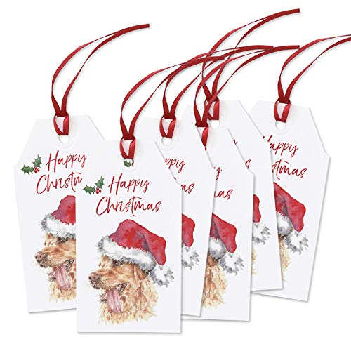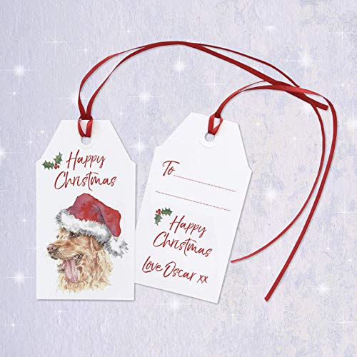 Set of 6 Golden Retriever Christmas Tags with Ribbon, Personalised Xmas Gift Label, Pack of 6 Dog Labels for Presents…