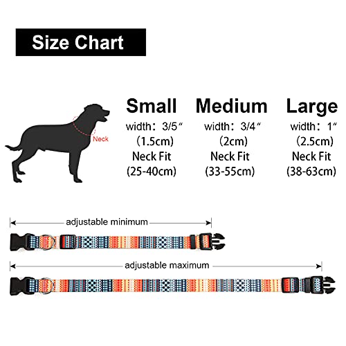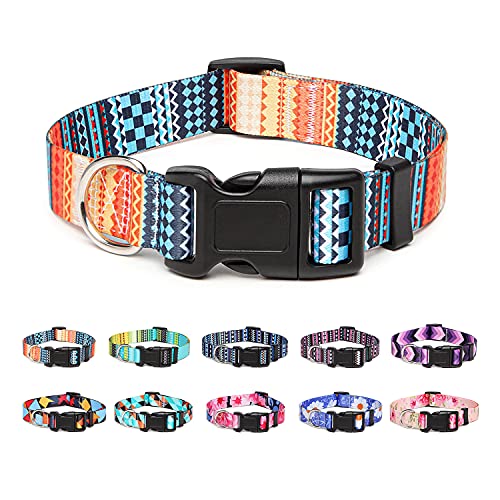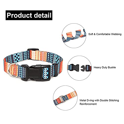 Suredoo Adjustable Nylon Dog Collar with Patterns, Soft Comfy Pet Collar for Small Medium Large Dogs (S, Bohemian Orange…