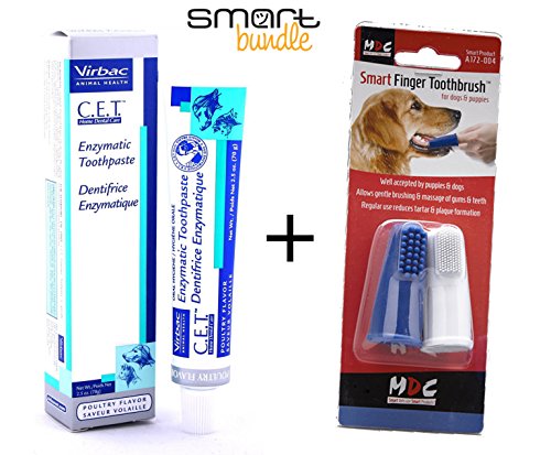 Virbac Enzymatic Toothpaste (Poultry Flavour 70g) with Smart Finger Toothbrush for Dogs (twin-pack) Bundle